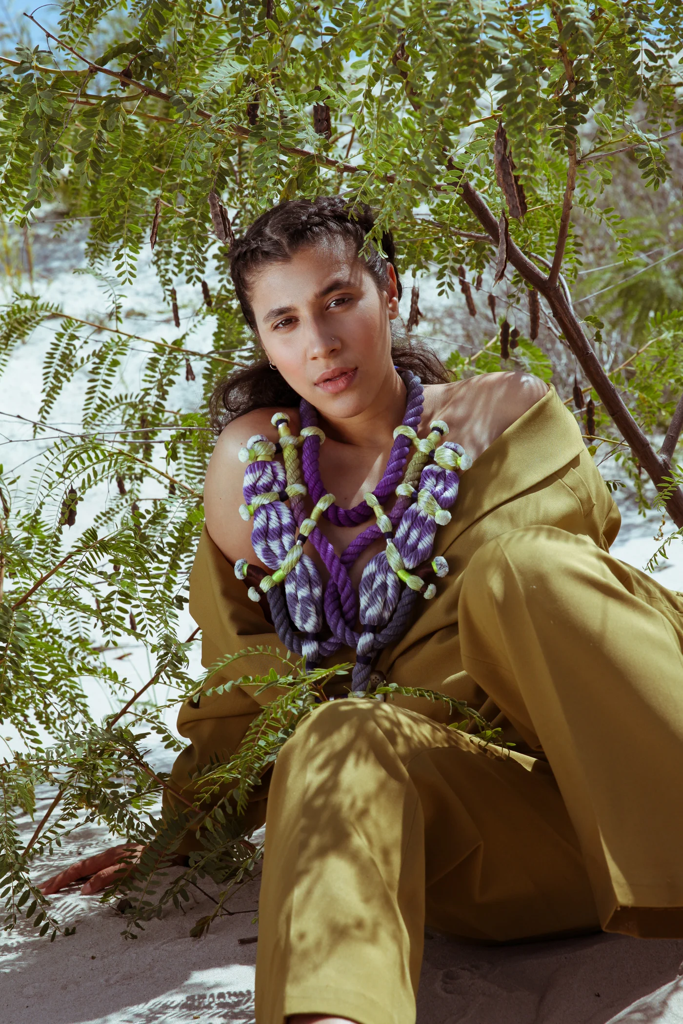 This series was inspired by the idea of finding each other, by opposites working together. We separate from one another, and find ourselves connected again. "PERDU & TROUVE" speaks to how we can so seamlessly combine the old and the new. The rope necklaces are created by Neon Zinn, a jewelry line based in New Orleans, and are paired with vintage men suits. The pieces from different time periods find themselves working together to create something beautiful, something that represents the masculine and feminine moving together.